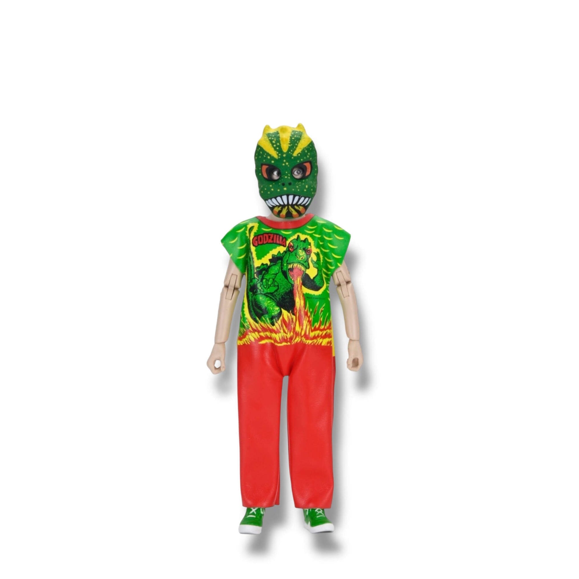 Trick or treat! Halloween continues at NECA with the next series in the Ben Cooper Costume Kids Collection. Series 7 features all-new trick-or-treaters based on the licensed kids’ costumes from two of the largest Halloween costume manufacturers from the 1950s through the ‘80s. This new five-figure lineup includes classic Ben Cooper and Collegeville costumes along with NECA’s own designs in the style of those costumes as if they were produced today. Standing approximately 6 inches tall, these fully poseable figures include 50th Anniversary Jaws, Return of the Living Dead’s Tarman, Planet of the Apes’ Warrior, The Fly, and Godzilla. Wearing a mask and soft goods clothing replicating the vinyl look of a classic costume, each playful figure comes complete with a unique trick-or-treat bag or bucket accessory. Every figure is sold separately and packaged in a retro-style window box that pays homage to the original costume packaging.